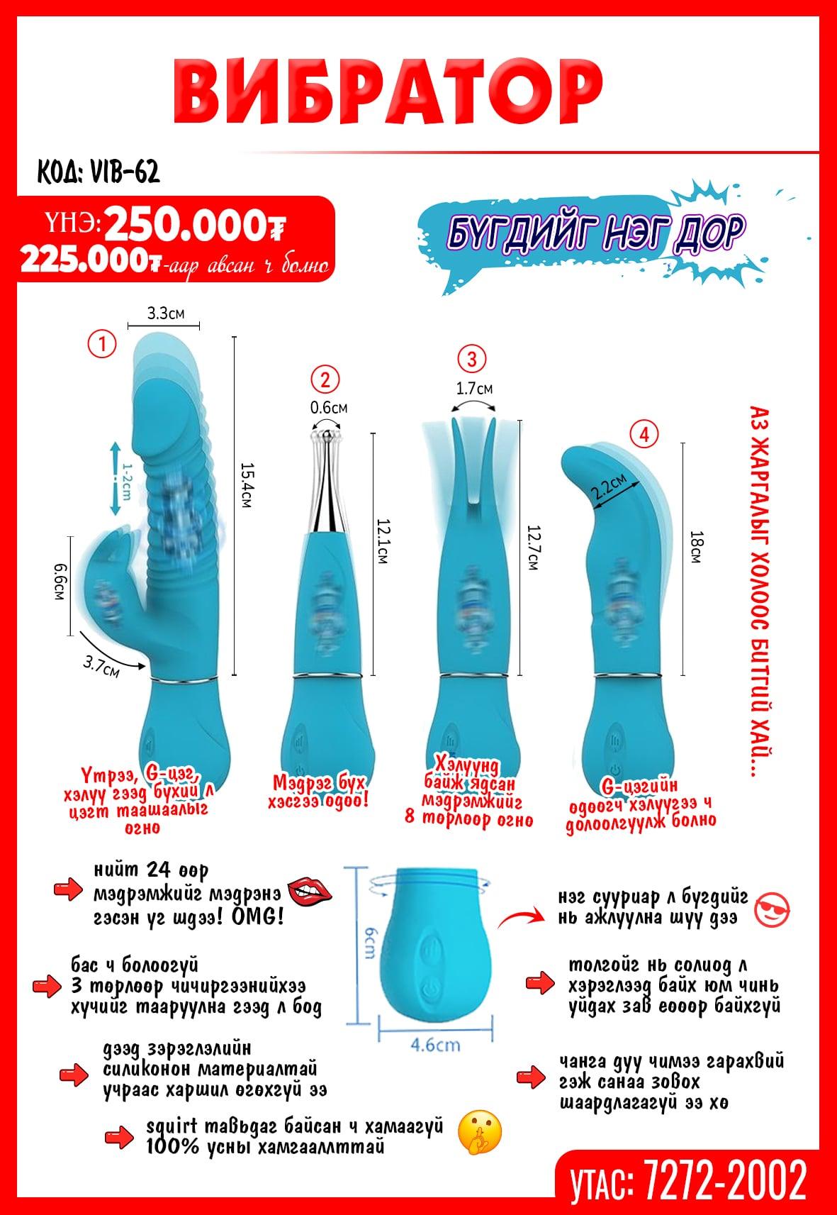 Вибратор тоглоом нь хэлүүнд илүү тохиромжтой загвар юм. Хэлүүгээрээ дур ханадаг эсвэл нэг сумаар 2 туулай буудах хүсэлтэй байгаа бүсгүйчүүдийн заавал хэрэглэх тоглоом.